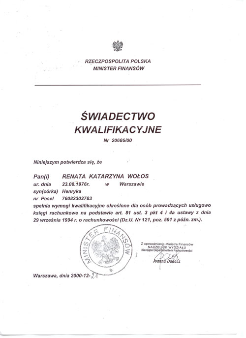 Nasze biuro jest nowocześnie i profesjonalnie wyposażone. Pracujemy na sprzęcie komputerowym najnowszej generacji, korzystamy z profesjonalnego, sprawdzonego, licencjonowanego oprogramowania. Dbamy o rzetelne systemy zabezpieczeń danych klienta. Nasz cały personel na bieżąco aktualizuje swoja wiedzę, uczestnicząc w różnego typu kursach, szkoleniach i studiach podyplomowych. Jesteśmy bardzo elastyczni- łatwo dostosowujemy się do potrzeb klienta- wypełniamy wnioski kredytowe, wnioski do PUP o dotacje i refundacje, itp., wiele spraw z klientem załatwiamy przez internet, co pozwala klientowi zaoszczędzić cenny czas.
